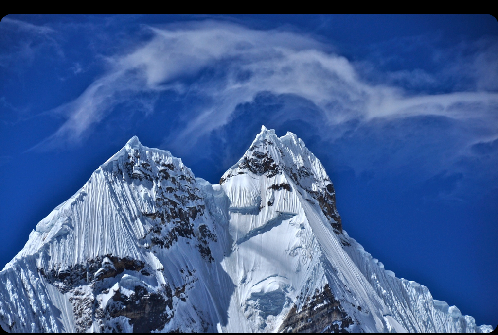 A peine longue de 30km, la Cordillère Huayhuash est riche en lacs et glaciers en cascade surprenants. Certains pics gigantesques qui la constituent s’élèvent à plus de 6000m. Parmi ceux-ci, il y a le mont Yerupaja (6634m), la deuxième plus haute montagne tropicale au monde et le mont Siula Grande (6356m), rendu célèbre grâce au livre et au film “La Mort Suspendue” de Joe Simpson et Simon Yates.