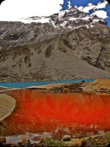 10.000 fleurs. Le camping où nous passons la nuit est situé à côté de la forêt de puyas aux portes de la vallée Trancaruri, qui offre une vue étonnante du mont Mururaju. Au-delà du camp, le sentier s’élève en une série de terrasses, rafraîchies de cascades. On y découvre une flore peu ordinaire et des chevaux en pâture. Dans la partie supérieure de la vallée, les rochers énormes de la moraine du Mont Pamparaju (habitat de prédilection de la viscache) sont le dernier défi à relever avant d’atteindre notre destination, le lac de Pamparaju, un spectacle à couper le souffle sur les eaux cristallines azur bordées de glace pure et de rochers roses.