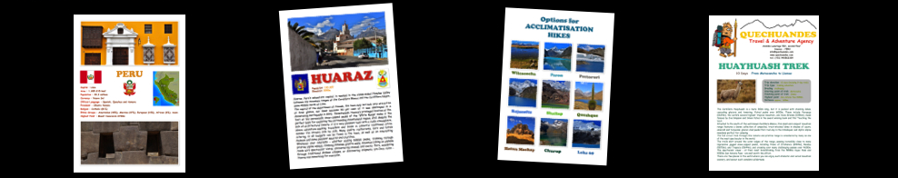 • For advanced bookings a series of PDF’s that we send to you by email, including the trek’s detailed itinerary, information about Huaraz with recommendations of hotels, restaurants, etc., information about Peru, options for acclimatisation hikes
