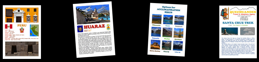 • For advanced bookings a series of PDF’s that we send to you by email, including the trek’s detailed itinerary, information about Huaraz with recommendations of hotels, restaurants, etc., information about Peru, options for acclimatisation hikes